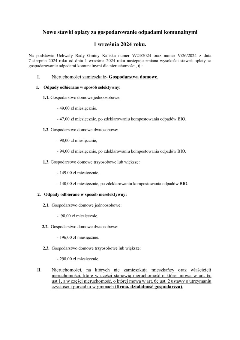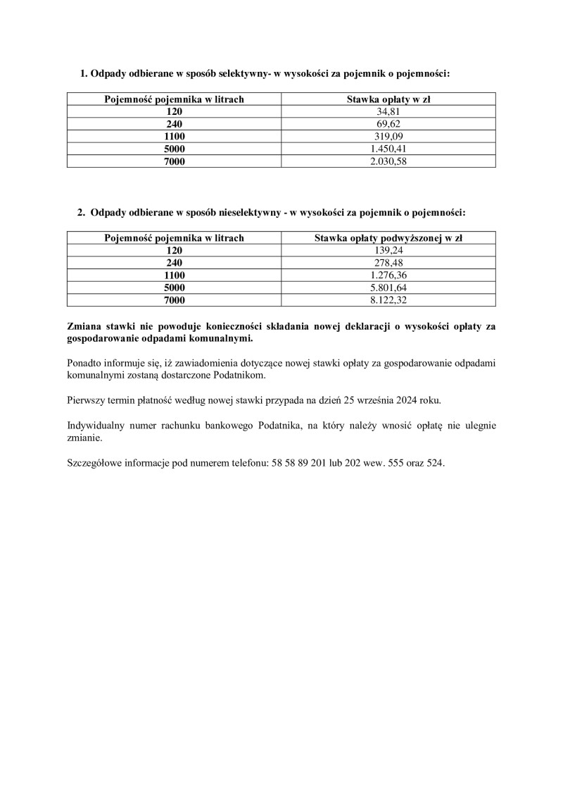 Przypominamy o nowych stawkach opłaty za gospodarowanie odpadami komunalnymi od 1 września 2024 r.