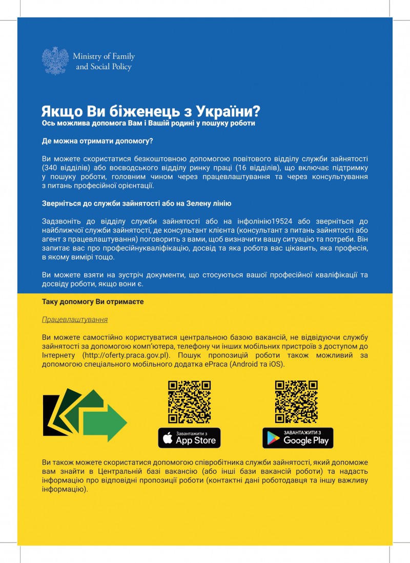 Informacje dla uchodźców z Ukrainy / Інформація для біженців з України