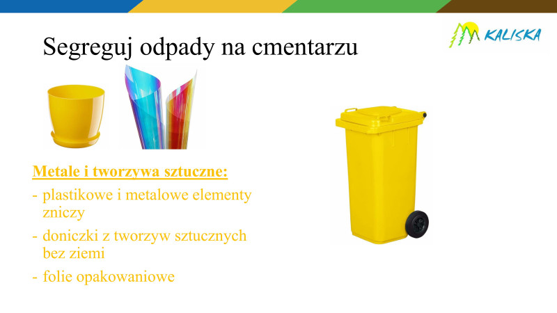 W związku ze zbliżającymi się obchodami dnia Wszystkich Świętych przypominamy Państwu o zasadach segregacji odpadów komunalnych na cmentarzach.