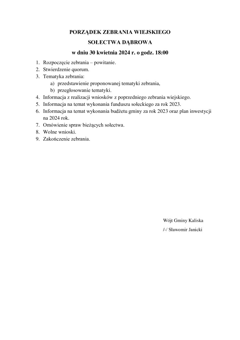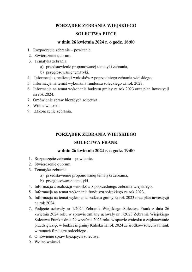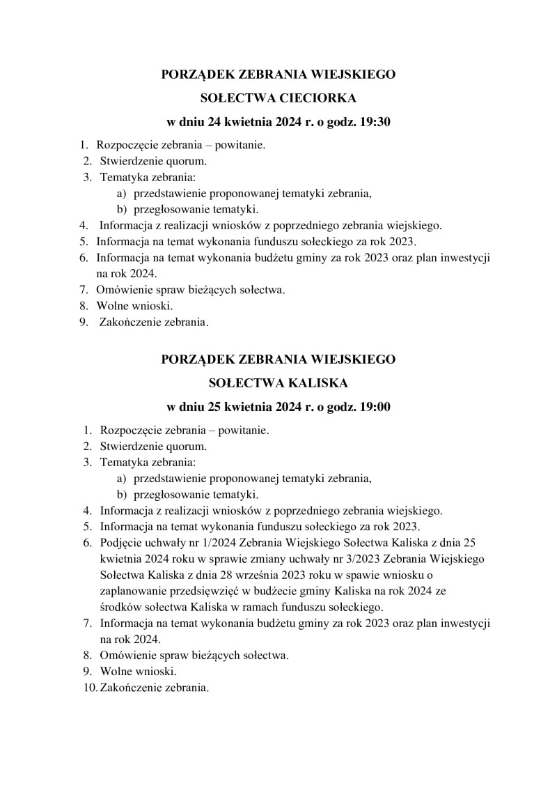 Zaproszenie na XXIII Sesję Rady Gminy Kaliska