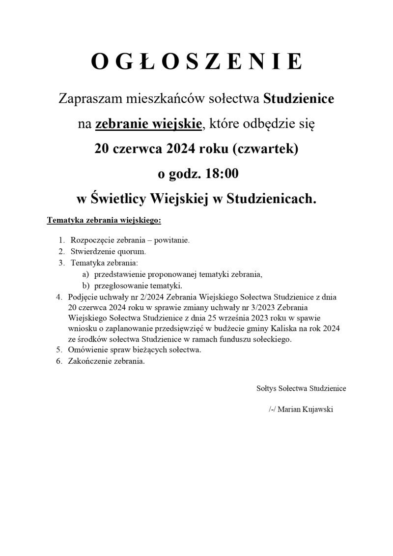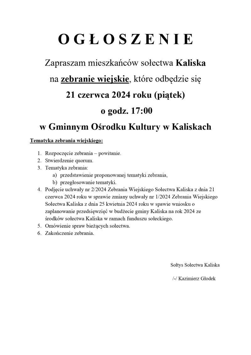 Przewodniczący Rady Gminy Kaliska Zbigniew Szarafin zaprasza na X Sesję Rady Gminy Kaliska